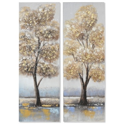 Tela decorativo com pintura de árvore em tons neutros, 2 modelos. Ideal para compor ambientes residenciais ou corporativos com elegância e estilo.