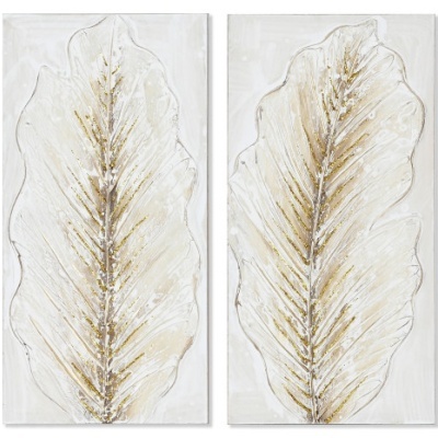 Quadro decorativo com pintura folha bege e detalhe brilhos dourados. Ideal para compor ambientes residenciais ou corporativos com elegância e estilo.